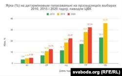 Паводле камісіі, яўка ў абласьцях за чатыры дні наступная: